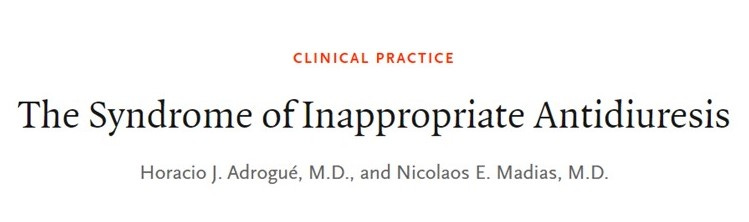 In this article, the authors discuss an older adult with the Syndrome of Inappropriate Anti-Diuresis (also known as Syndrome of Inappropriate Anti Diuretic Hormone secretion). The patient had a serum sodium level of 128mmol/L with unsteadiness of gait and some degree of cognitive clouding. The authors remind us that while this syndrome can be idiopathic, it is important to look for diseases that trigger such inappropriate increases in ADH. The authors also stress that adrenal insufficiency and hypothyroidism are important differential diagnosis for those who have unexplained hyponatremia. The learning points from this article are: